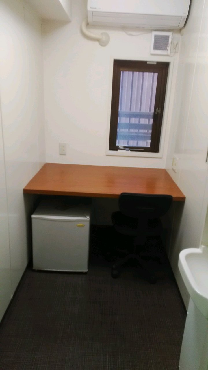 室内備品:テーブル・ミニ洗面台・個別エアコン・冷蔵庫